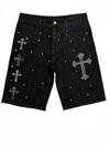 ROMWE MEN Street Life Herr Casual Daglig Street Diamantknappar Jeansshorts