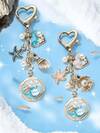 1pc Pearl Heart Starfish Shell Dripping Alloy Keychain, Vintage Fashion Summer Ocean Series Baroque Exquisite Style Bag Car Pendant, Marine Style Keychain With Shell,Summer Vibe Starfish & Faux Pearl Pendants, A Souvenir Gift For Friends And Relatives, For Decorating School Bags, Purses, And Earphone Case