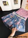 ROMWE Spring/Summer Y2K Style Butterfly Embroidery & Rhinestone Distressed Vintage Super Low Waist Super Short Women Denim Shorts
