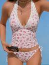 Swim Vcay Women's Ditsy Floral Spaghetti Strap Camisole And Bikini Set, Romantic Beach Vacation, 2026 Spring/Summer Women's Fashion New Arrivals: New Year's Styles, Valentine's Day Styles, Back-To-School Styles, Travel Styles, Suitable For Vacations, Beaches, Afternoon Tea Picnics, Parties, Daily Work, Casual Wear, Outdoor Sports, And Stylish Outfits. High Waist Bikini Set High Waist Swimsuit Set Boho Bikini Set Beach 2 Piece Set Vacation Two Piece Set Women