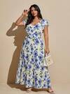Roveilla Plus Size Dress With Ditsy Floral Print, V-Neckline And Cinching Waist Maxi Women Outfit