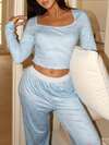 Snug Reverie Women's Solid Color Minimalist Long Sleeve Top And Pants Set, Daily Wear, Fluffy Cozy Winter Clothes