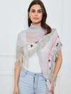 Polyester Fringed Triangle Scarf With Lace And 4 Flower Relief Design