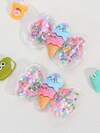2pcs Muclticolor Candy Hair Bow Clips For Girls,Fabric Ice-Cream Decor Hair Bow Clips,Cute Hair Accessories For Girls Party Gifts
