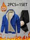 2pcs Men's Casual Hoodie And Sweatpants Set, Thermal Lined Thick Outdoor Jacket And Pants, Autumn/Winter,Fleece