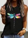 INAWLY Plus Size Women's Colorful Dragonfly Print Casual Tank Top Graphic Tees Women Tops