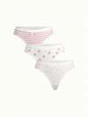 3pcs Cute Bow Thongs For Women - Comfy & Stretchy, Strawberry & Ditsy Floral Prints,Low Rise, Soft Viscose Blend, Fashionable Lingerie, Panties