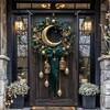 2D Door Banner, Ramadan Crescent Moon Wreath - Durable Polyester Front Door Banner, Ideal For Seasonal Parties And Outdoor Decor, No Power Required