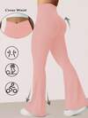 Minimalistiska dambyxor med hög midja och vida ben, sexiga, avslappnade sportbyxor med raka ben, lyftande utsvängda byxor, slim fit yogaleggings, stretchiga sportbyxor för vår, sommar, höst, lämpliga för vardagsbruk och fitness
