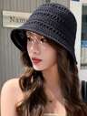 1 st. bohemisk enfärgad pärlhalmhatt i urholkad panamahatt, avslappnad UV-skyddande dekorativ solhatt, moderiktig matchning för utomhusaktiviteter, alla årstider