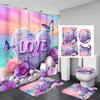 1/4pcs Gold & Green Tropical Leaf Theme Bathroom Set, Includes Shower Curtain, Bath Mat, U-Shaped Toilet Mat, Toilet Lid Cover, Waterproof Shower Curtain, Fashionable Curtain For Bathroom Decor, Modern Style Bathroom Divider Curtain, No Drilling Required, Made Of Polyester, Machine Washable #2 Bestseller