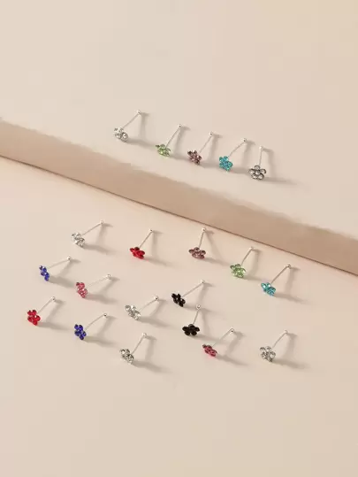 20 st/set Strass blomdekor Nose Stud Koppar Kristall Punk Piercing För Kvinnor - Gör ett djärvt uttalande med denna Edgy Body Smycken Present Alla hjärtans dag, mamma, mor, mors dag, gåva - Multifärgad - Visa 3