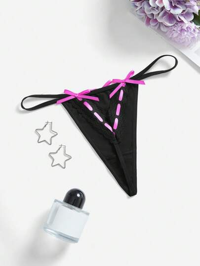 PetitDoll Women's Sexy Lace Ribbon Hollow Out G-String Panties - Multicolor - View 5