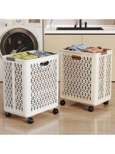 [Laundry Basket] Wheeled Laundry Basket, Side Ventilation, Foldable, Suitable For Storing Dirty Clothes, Towels, And Underwear, Great For Dorm, Bedroom, And Bathroom - Multicolor - View 1