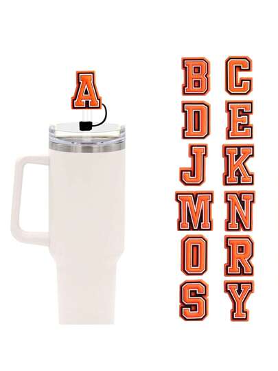 0.4in Cute Silicone Initial Letter Straw Covers Cap For Cup, Dust-Proof Drinking Straw Reusable Straw Tips Lids,Personalized Charm For Tumbler(Orange),Kitchen,Christmas Gift - Orange - View 1