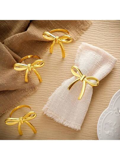 1-12 Pcs Gold Bow Napkin Rings, Metal Alloy Napkin Holders, For Wedding, Thanksgiving, Christmas Table Setting, Holiday Party Decor, Family Gathering, Dinner Decorations - Multicolor - View 1