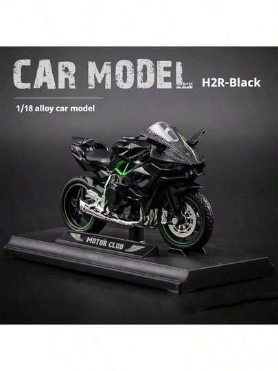1:12 Scale Motorcycle Model, Kawasaki H2R Black, Suzuki GSX R1000 Black/Blue, Motorcycle Black Alloy Car Model Toy, Can Stand Upright, Steering Movable, Rear Wheel Shock Absorber Function, Realistic Motorcycle Decoration Collectible Toy Gift - Black - View 1