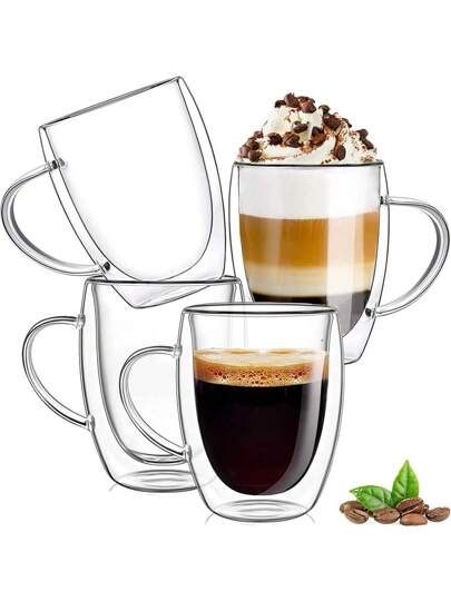 1-2-4 st/set genomskinliga dubbellagers glasmuggar med handtag, lämpliga för kaffe, te, latte, cappuccino, 12oz - Vinterisolerade glasmuggar - transparent - Visa 4