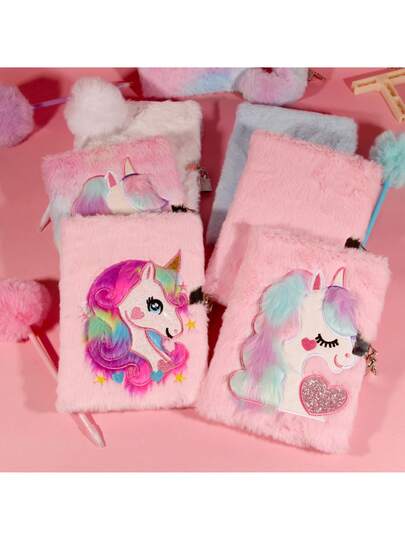1/2 st. rosa plysch A5 låsbar kalenderanteckningsbok, mjukt pärm drömkalenderbok, skolmaterialkalender med kulspetspenna, skolmaterial, tillbaka till skolan - Multifärgad - Visa 9