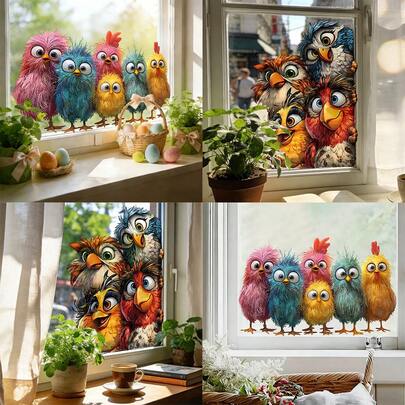 1/2pcsColorful And Cute Chick Window Stickers, Reusable PVC Electrostatic Adsorption Easter Stickers, Suitable For Shop Windows, Balconies, And Bedroom Decorations, Preventing Bird Strikes. - Multicolor - View 6