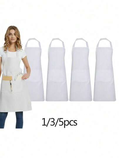1/3/5pcs, Polyester Apron For Women,Simple Style Black Apron With Pockets, Thickened Waist Apron, Fashion Housework Kitchen Household Workwear, Kitchen Supplies - Multicolor - View 1