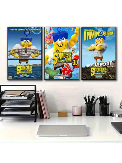 1/3PCS Cartoon SpongeBob Movie Movie Decorative Wall Painting, Wall Decoration, Decorative Painting, Suitable For Bedroom, Living Room Or Office Decoration, Perfect Gift For Christmas, Birthday, Valentine's Day And Home Decoration, Unframed - Multicolor - View 19