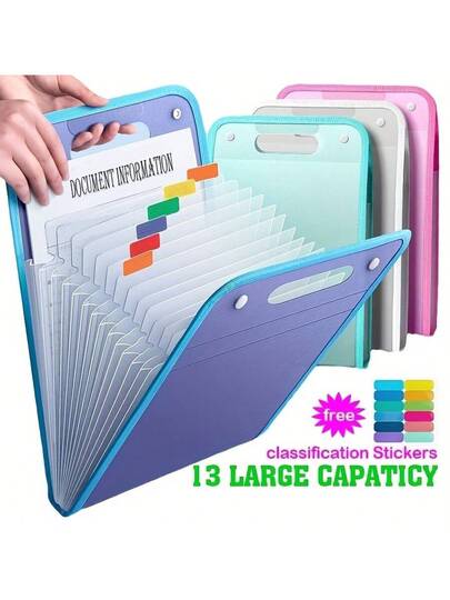 1-4pcs Vertical Colorful A4 File Folder Accordion Bag, Waterproof A4 Expandable File Folder, Portable 13-Layer High Capacity A4 Document Bag, Suitable For Students, Office, Back To School - Multicolor - View 12
