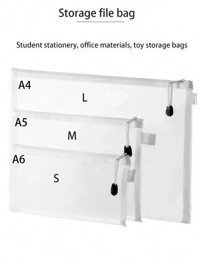 1/5/10/20pcs Transparent File Bag In Three Sizes, 5/10/20pcs, A4/A5/A6. 1pc, S/M/L. Zipper File Bag, Puzzle Toy Classification Bag, Pencil Bag, Folder, Office Stationery Storage Bag, Gift Bag,Back To School,School Supplies - White - View 1