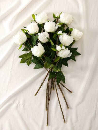 1/5 st 40 cm konstgjord pionblombukett, naturtrogna pioner, konstgjorda blommor, lämpliga för heminredning, alla hjärtans dag-present, mors dag-present, bröllopsdekor, festdekor, bröllopsbukett, kontorsdekor, sovrums- och vardagsrumsarrangemang - Vitt - Visa 10