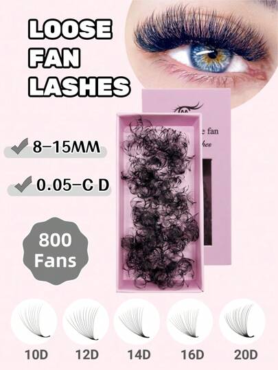 1 Box 800Fans 10D/12D/14D/16D/20D Promade Loose Fan Lashes Extension 0.05mm D Curl Pointy Base Volume Premade Fans Eyelash Extensionlash Clusters,Eyelash Clusters,Individual Eyelashes,Lashes,Fake Lashes - D - View 1