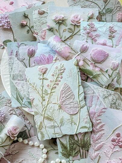 1 Pack Of 23 Sheets Vintage Plant, Flower, Tree Leaf DIY Decorative Scrapbooking Background Paper - one-size - View 6