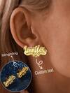 1 Pair Of Fashionable Name Customized Earrings With Engraving Option, Personalized Minimalist Gold Name Jewelry, Perfect For Gifting To Lovers, Family, Birthday, Anniversary, Mother's Day, And Other Special Occasions, Gold, Stylish, Colorful, Vintage, Simple, Unisex, Casual, Cuties, Custom, Personalized, Unique, For Anniversaries, For Birthdays, For Graduation, For Prom, For Party, Stainless Steel Jewelry, Customized Fashion Word Earrings, Street Casual Chic