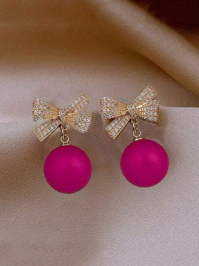 1 par modemetallbåge pärlorhängen, rosa passar kvinnor, jul, nyårsfest Alla hjärtans dag, mamma, mor, mors dag, present - Skrikrosa - Visa 2
