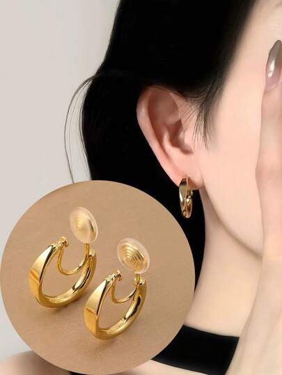 1 Pair Fashionable Flat Circular Copper Earrings For Women, Clip-On Earrings, Elegant & Slimming, Suitable For Daily Wear, Holiday Gift - Ear Clip - View 9