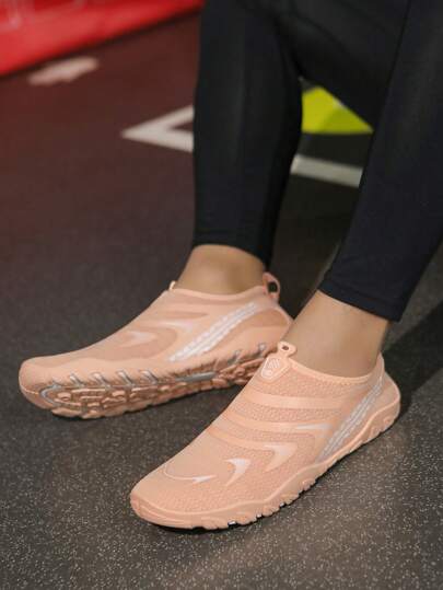 1 Pair Outdoor Men Wading Shoes, Beach Water Shoes With Breathable Mesh Upper For Swimming, Snorkeling, Surfing, Beach Activities, Rubber Anti-Slip Sole, Suitable For Beach Parties - Apricot - View 1