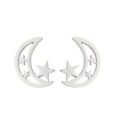 1 Pair ‌ Retro Star And Moon Earrings, Gold ‌ With ‌ Hollowed-Out Design ‌, Crescent Moon, Crescent Five-Pointed Star, Simple Style, Suitable For Daily Wear - GED304 - View 1