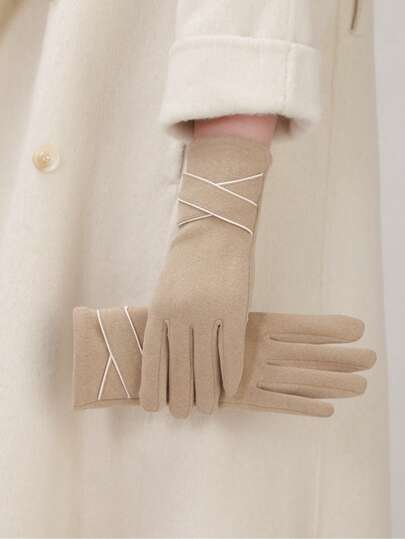 1 Pair Solid Color Casual Polyester Fiber Touchscreen Gloves, Warm Thermal Lined, Suitable For Women, Daily Wear, Driving, Cycling In Winter - A - View 1