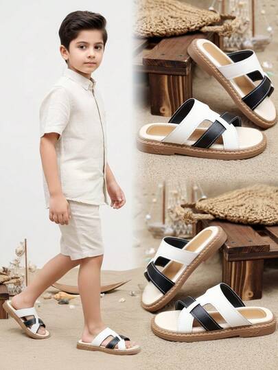 1 par vita strandsandaler för småbarn, halkfri gummisandaler med mjuk botten, svart kontrastfärg, rund tå, lämplig för pojkar 3-15 år, vardags- och fritidsskor, skolor, strand, utomhus, fest, vår/sommar 2026 ny - Svart och Vitt - Visa 1