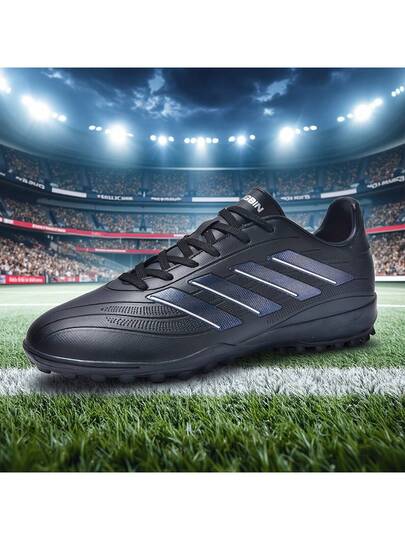 1 Pair Unisex Cleated Football/Soccer Shoes, Suitable For Outdoor Artificial Turf, Indoor Training Field, Professional Team Sports, Lace-Up, Non-Slip Rubber Sole, Lightweight High-Performance Design, Popular Factory Direct - Black - View 1