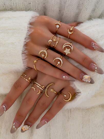 1 Pc Cooper Zirconia Moon Star Ring For Women Luxurious Pave Setting Crystal Ring Adjustable Size , Middle East Starlight Rings Jewelry - Multicolor - View 19