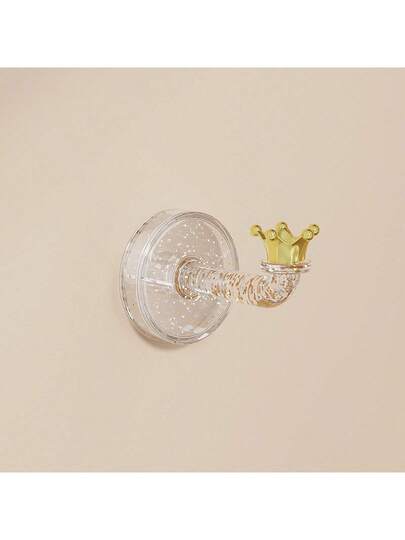 1 Pc Crown Shaped Hair Accessory Hook No Hole Wall Hook Hair Ring Hair Hoop Accessory Small Item Storage Rack For Vanity And Bathroom, Elegant Crown Design, Wall Mounted Organizer For Hair Clips, Ties, Elastics, Rings, Jewelry, And Small Accessories, Perfect For Dorm Room, Home Decor, Spring Cleaning, And Thoughtful Valentine Gift