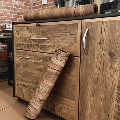 1 rulle PVC oljetålig träfiberklistermärke självhäftande tapet för köksbänkskiva möbler skåp bord väggrenovering - Mockabrun - Visa 21