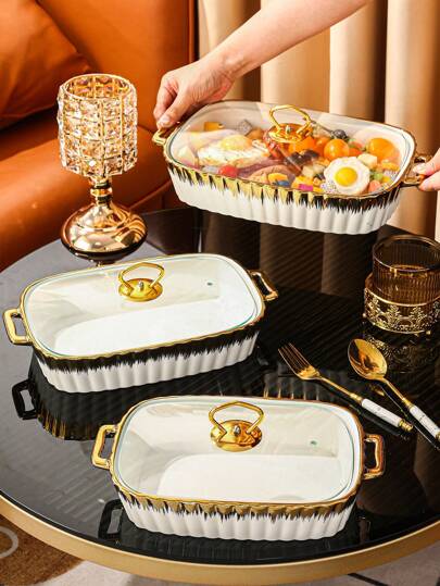 1 Set Ceramic Plate, Suitable For Home/Restaurant/Kitchen Use, Includes Bakeware, Casserole, Pot - Ideal For Bread, Turkey, Cheese, Pizza, Outdoor/Wedding/Party/Gift/Birthday, Thanksgiving Day Gift, Harvest Festival, Family Dinner - Multicolor - View 1