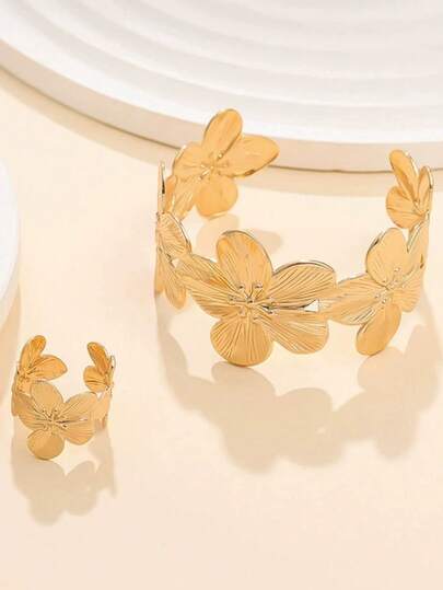 1 Set Flower Openwork Bracelet & Ring Jewelry For Women, Valentine's Day Gift - flower pattern - View 1