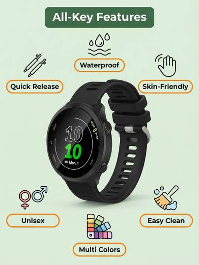 1 Set Of Silicone Strap, Compatible With Garmin Forerunner 55, 20mm Soft Silicone Material, Suitable For Forerunner 158/645/245/Venu/Watch Active 2/Galaxy Watch 4 42MM, Also Compatible With Other 20mm Watch Straps, Suitable For Both Men And Women - 20mm - View 20