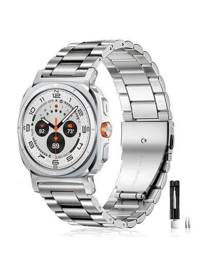 1 klockarmband i rostfritt stål + 1 borttagningsverktyg för metallarmband, kompatibel med Galaxy Watch 8 / 8 Classic Ultra 47 mm (2025/2024), unisex metallarmband, passar handledsstorlek: 6,3"-8,26" (160 mm-210 mm) - Silver - Visa 1