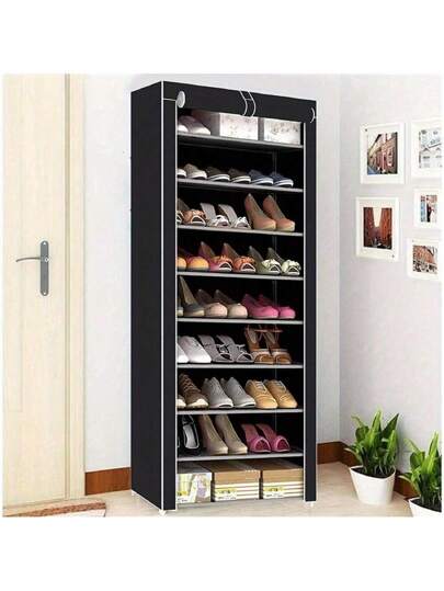 10 Layer Shoe Cabinet, Stackable Shoe Rack Storage Rack - Hand Assembled, With Non-Woven Fabric Shoe Cabinet - Svart - Visa 1