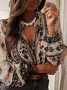 Geometriskt mönster långärmad lös knapprandig lapel midiklänning Skjortklänning, polyestertyg, lämplig för strand, utekväll, kontor, hem på våren/sommaren