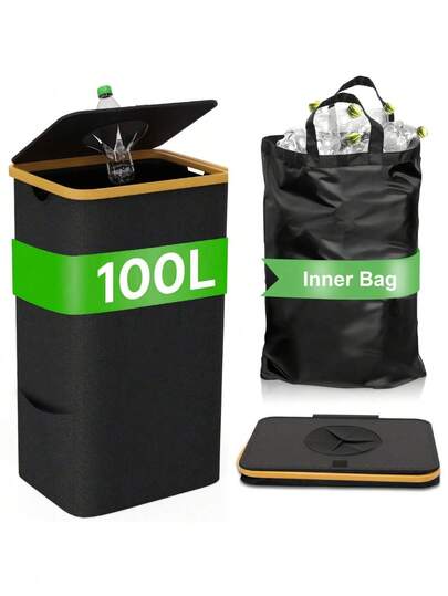 100L stor återvinningsbehållare med lock – 29 gallon soptunna för inomhuskök med 1 avtagbar återanvändbar innerpåse för flaskor, burkar, plast och glas, multifunktionell avfallssorteringsbehållare för hem, lägenhet, kontor och studenthem, perfekt present till familj, vänner, alla hjärtans dag, alla hjärtans dag, födelsedag, inflyttningsfest och högtidsdagar - Multifärgad - Visa 1