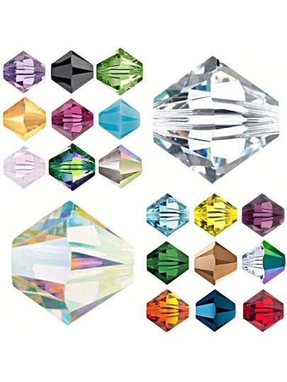 100Pcs Multicolor Austrian Crystal Bicone Beads - 4mm Faceted Glass Spacer Beads For DIY Jewelry Making And Handmade Crafts - One Bag - View 1